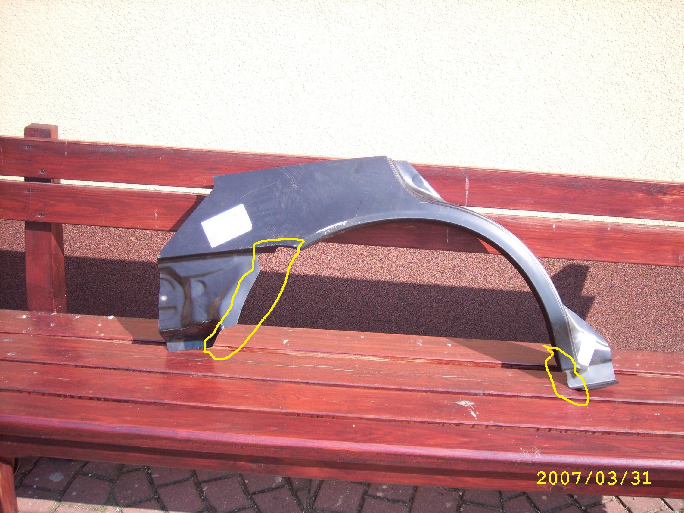 Tu mi lec± te nadkola (z lewej strony korojza jest mniesza). Mam pro¶be do ¿yczliwych ile to bedzie mnie kosztowa³o. Region : po³udniowa cze¶c mazowieckiego ( od Radomia w dó³) Zale¿y mi na dobrym zabezpieczeniu przed korozj± no i w miare mo¿liwosci wiernym odtworzeniu kszta³tu. Lakier wystarczy zeby by³ podobny do orygina³.