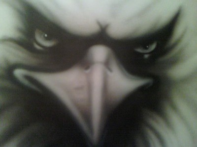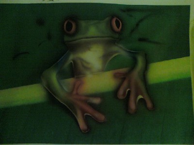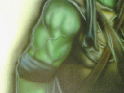 no ok to ja sie wypowiem...ale bardziej z punktu widzenia "rysownika" a nie aerografisty a wiec ...chciales krytyke ...nieco koslawa calosc...zmarszczki nienaturalne...na rece szczegolnie...niezbyt poprawnie wycieniowane.