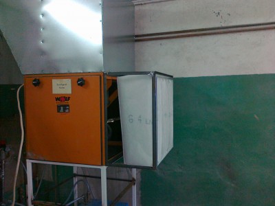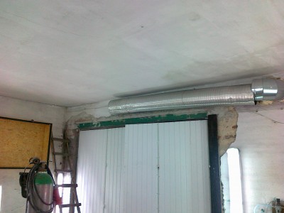 Nagrzewnica z wentylatorem skoñczona w 95% jeszcze tylko pod³±czyæ na sta³e do pr±du przez w³±cznik silnikowy stycznik i wy³±cznik krañcowy . Otwieraj±c drzwi do lakierni bêdzie siê turbina wy³±czaæ bo w pomieszczeniu powstaje du¿e (jak na 4000m3/h) nadci¶nienie .Drug± spraw± jest to ¿e otwieraj±c drzwi przy w³±czonej turbinie ca³y odkurz cofnie mi siê do warsztatu zamiast przez filtr ,,Paint Stop,, na zewn±trz.