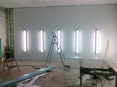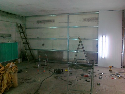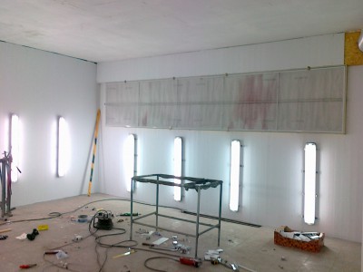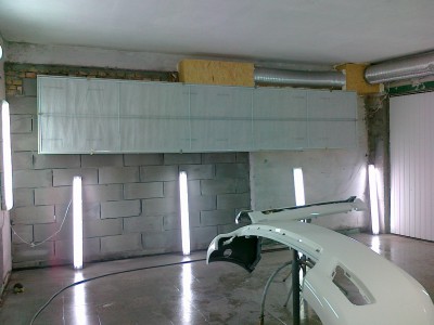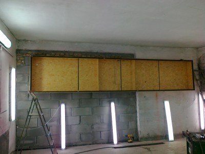 Posiadam 160m2 pod dachem warsztatu tj. 4 pomieszczenia . Jakie¶ 3 lata temu wymieni³em dach na p³ytê warstwow± teraz pomieszczenie w którym lakierujê chcê zrobiæ na wypasie za 4ty¶. na prawdê ¶mieszne bo to stanowczo za ma³o ale dam radê . To jest remont w trakcie remontu dlatego ca³a sceneria tak wygl±da