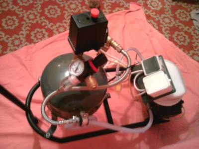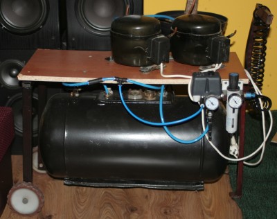 pocz±tki to szukanie czê¶ci i tu z pomoc± przyszed³ kuzyn i jego zapomniana sprê¿arka z 64 roku Umieszczona by³a na 30-to litrowym zbiorniku i nie dzia³a³a. Fota poni¿ej.