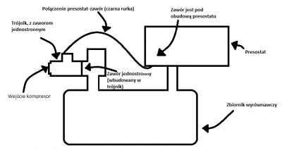 - kilka innych drobnych rzeczy jak: filterek powietrza, trójnik mosiê¿ny, "upuszczacz powietrza" (taki co wypuszcza powietrze jak ci¶nienie przekroczy 3 bary - dzia³a jak alternatywa presostatu) - kosztowa³o mnie do 35z³