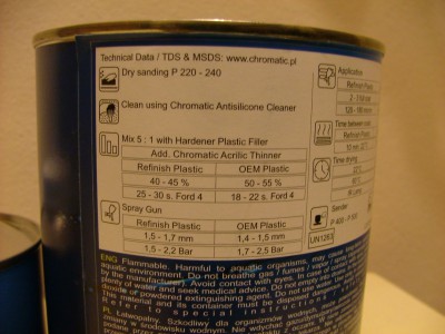 | Mnie wywalili ze Spectralem z jednego warsztatu, jakim¶ podk³adem za 120 brutto za 2,5 litra i klarem 360 brutto za 5 litrów. |