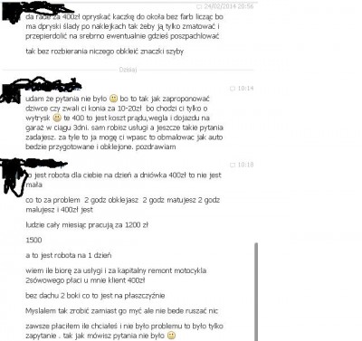 Ja nie zarabiam nie wiadomo jakich kokosów ale jak czytam narzekania, ¿e ten lakieruje za pó³ darmo bo taki rejon, tamten ledwo wegetuje bo konkurencja du¿a a jeszcze inny jako¶ nie mo¿e do niczego doj¶æ bo chyba mu siê nie chce to rêce opadaj±.