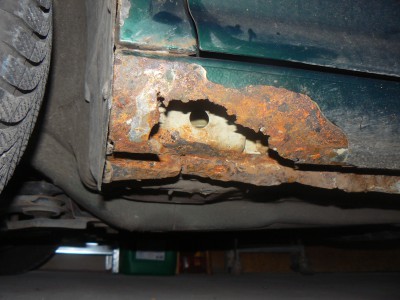 Widok na próg przy tylnym nadkolu, (korozja raczej mniejsza ni¿ z przodu).