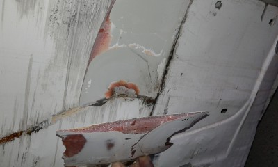 Auto mia³o przerysowany bok i pêkniêta szpachle (a w zasadzie nie szpachle) komus siê nie chcia³o klepaæ i poprostu zakleil czyms co przypomina ¿ywice albo to jest ¿ywica. To jedne z moich grubszych znalezisk