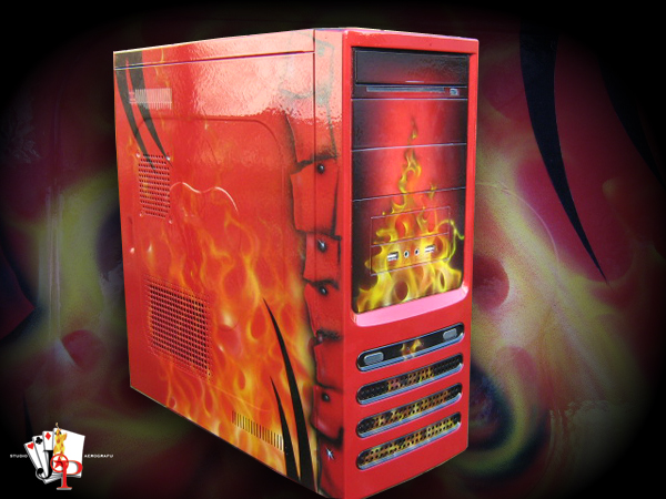 Obudowa komputerowa w kolorze "Velocity red" malowana w p³omyki + diablica