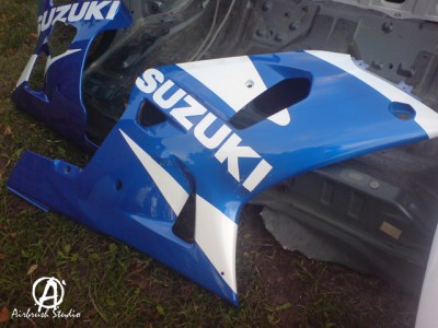 wrzuce tu kilka fotek GSXRki któr± nale¿a³o pomalowa w orygina³. motorek by³ po sporej wywrotce.