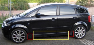 Witam, chcia³em zapytaæ w jaki sposób polakierowaæ dok³adkê progu (zdjêcie zamieszczam poni¿ej) w Audi A2. Dok³adka wykonana jest z 3 elementów ¶rodkowy (zaznaczony ¿ó³tym kolorem na zdjêciu) jest z plastiku - czarny mat, natomiast elementy zaraz za przednim ko³em oraz zaraz przed tylnym ko³em (zaznaczone czerwonym kolorem na zdjêciu) wykonane s± z grubej gumy. Elementu gumowe daj± siê delikatnie wgnie¶æ przy nacisku palcem. Jak to polakierowaæ w kolor nadwozia? I jakich (konkretnie firma i produkt) materia³ów u¿yæ. Wiem, ze da siê to zrobiæ poniewa¿ widzia³em ju¿ dwa tak zrobione samochody. Pozdrawiam i z góry dziêkujê za pomoc.