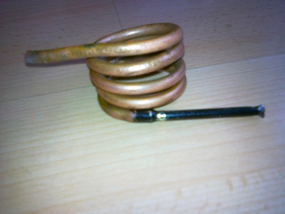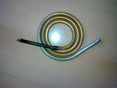 mo¿na równie¿ zrobiæ z takiej samej rurki co te poprzednie spirale ale pionowe albo nawet i dwie wykorzystanie grawitacji spowoduje ze woda sp³ynie do zbiorniczka hermetycznego z zaworkiem |