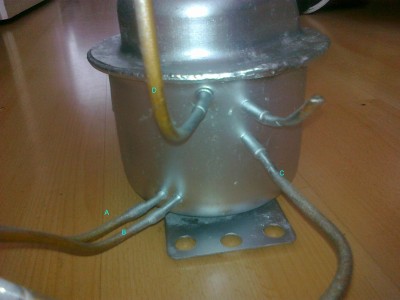 te dwie tajemnicze rurki po lewej stronie musz± w ¶rodku byæ jako¶ po³±czone na 99% odpowiadaj± za ch³odzenie agregatu, co my¶licie aby wype³niæ je samochodowym p³ynem ch³odniczym pod³±czyæ do ma³ej ch³odnicy z dodatkiem wentylatora, p³yn ch³odniczy nie przewodzi pr±du, tylko ciekawe jak wygl±da to w ¶rodku czy przypadkiem nie po³±czy siê z olejem, dodatkow± wskazówk± jest fakt i¿ dmuchaj±c w jedn± powietrze uchodzi drug± i odwrotnie, nie s± po³±czone z ca³± reszta, czy lepsz± opcj± bêdzie aktywne ch³odzenie powietrzem z zewn±trz pod w³asnym ci¶nieniem.