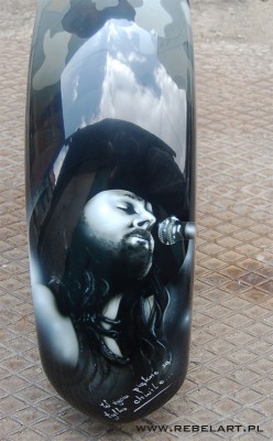 Ca³y motocykl jest w moro. taki ju¿ przyjecha³ z Kanady. Ten b³otnik by³ naprawiany z przodu dlatego malowanie jest w ten sposób.