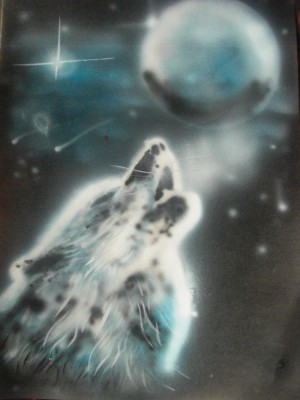 wilk kartka format A4, ogien troszke wiekszy karton, wszystko farby createx
