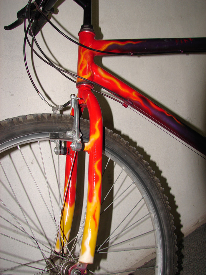 Witam. Przedstawiam moj "nowy" rower. Zalozenie bylo takie aby namalowac plomienie jak najlepiej z freehand'u. Chetnie wyslucham opini forumowiczow jesli jacys tu s±... wiem jest kilku. a ostatnia fota tez do obgadania.