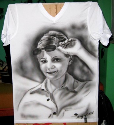 Co do koszulek, marilyn w miejscu wisiorka ma mieæ doszyty prawdziwy czy tam jakie¶ per³y, ju¿ nie moja w tym g³owa i porada. Nie polecam robiæ malowaæ na koszulkach z "lajkr±" jeszcze dla dziewczyn. Po za³o¿eniu, rozci±ga siê i cycki psuj± ca³y efekt