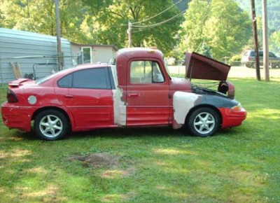 Ej a tak powa¿nie.. Mo¿e to dopiero zal±¿ek projektu? mo¿e kto¶ tak pomalutku po cichutku chce wpasowaæ klasycznego pick up'a na p³ytê pod³ogow± wspó³czesnego plastika? Zacz±³ od kabiny, dokoñczy front, pó¼niej jako¶ wpasuje pakê. To mialo by ju¿ sens mimo i¿ teraz wygl±da .. komicznie |