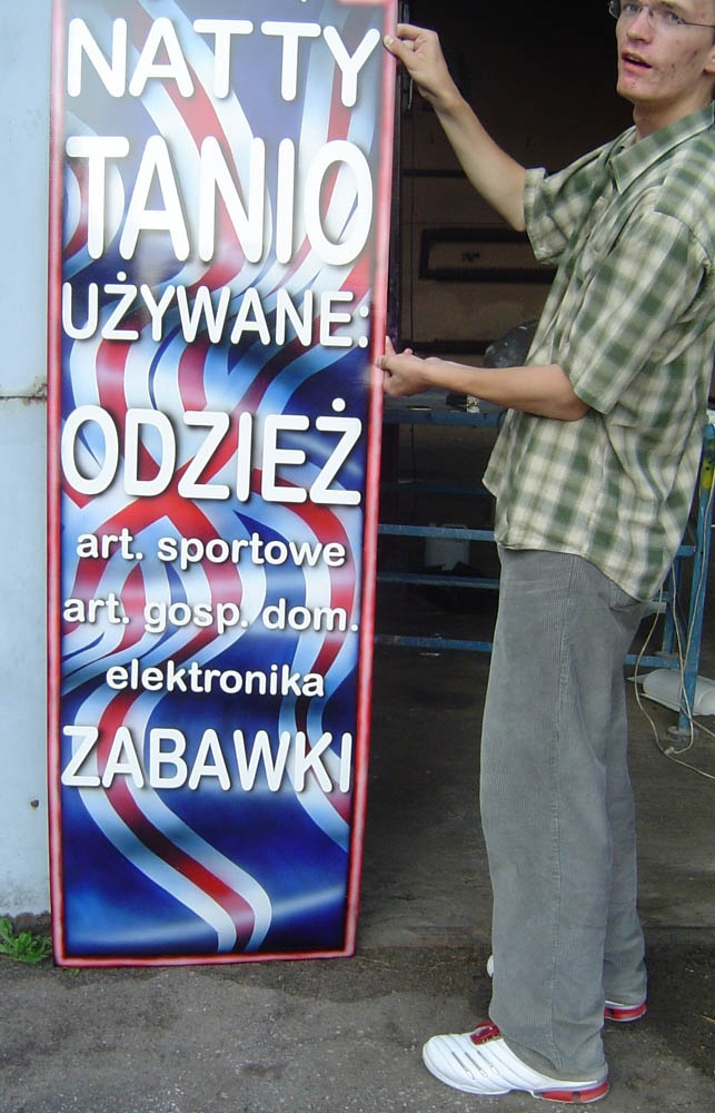 Ceny pewnie s± ró¿ne w ró¿nych miejscach kraju . Moje miasto jest biedne ,¶rednia pensja to 800z³. Na szyldach zarabia siê w³a¶nie na powierzchni ,która nie jest ,a nawet nie mo¿e byæ wype³niona ca³a skomplikowan± grafik±. Dodajê zdjêcia ,ale nie wiem co z tego wyjdzie.