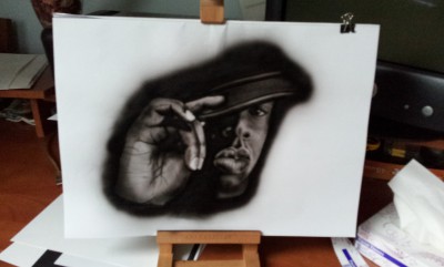 Powoli kolor + brak ogarniêcia bia³ej farby ... Zapycha mi niesamowicie aerograf! Ale ju¿ wiem , ¿e je¶li w³osy to najlepiej szybkimi ruchami, a ja za bardzo siê spuszcza³em nad kszta³tem kosmków. Je¶li co¶ siê bêdzie dzia³o, bêdê wrzuca³ dalej.