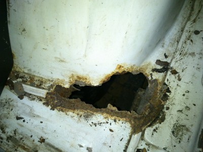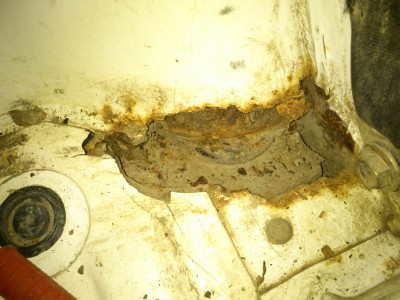 pod nogami jak masz profil do ramy to go zbadaj dokladnie jak parchaty to go wywal w calosci nie obsmarkuj dookola bo to sie szybko konczy ponownym cieciem hehe pacjenta ... za fotelem to tez standart tam, bym obstawal przy wycieciu tej podwojnej blaszki i wstawieniem czegos konkretniejszego wraz z mocowaniem do ramy ..