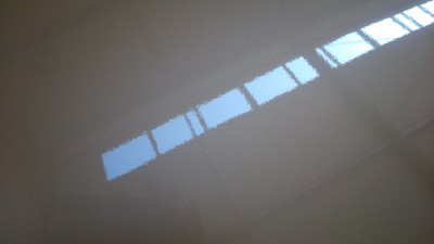 | Naklejasz ta¶me na dole równo do tej lini i szpachlujesz górê, potem naklejasz tasme do gory i szpachlujesz do³ |