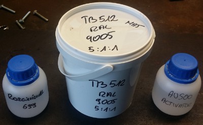 20150812_185533.jpg Farba ma byc w proporcji 5:1:1 Czyli Ral9005 ma byc 5 rozcienczalnika 1 i aktywatora 1 |