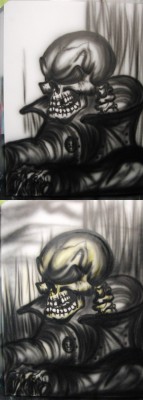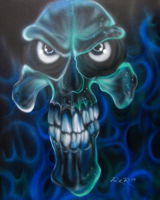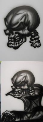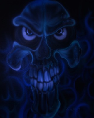 Cenna informacja do jakich kolorĂłw dodajesz UV? wydaje mi siĂŞ Âże Âświeci biel w czaszce i niebieski w pÂłomieniach... |
