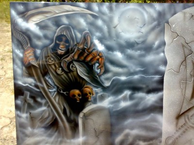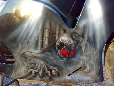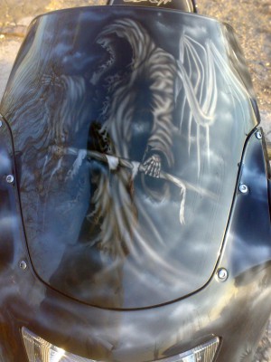Witam. Ostatnio popsikalem troszke a mianowicie Honde CBR XX "Black Bird'' tak chyba ta nazwa leci w calosci Ogolem tematyka demoniczna wiec zapraszam do ogladania i wyrazania sowich opini uwag itp zdjecia sa jakie sa ale widac raczej co nie co Co tu wiecej farby standard bazy sam. zmienilem sprzecik na nowego borsuka Renegade "VELOCITY" mialem spory problem na pocztku bo przezwyczajnie do dolnych zbiorniczkow ale jakos pomalutku daje rade ale to juz sami ocencie czy sa jakies postepy Pozdrawiam wszystkich forumowiczow Yo!!!
