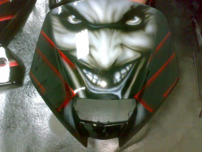 Yo a mam jeszcze taki motywik Jokera takiego komiksowego . Na przedniej owiewce plastiku czy jak tam z krosowy husqwarny . Wymiary tej facjaty to ok 25x15cm.