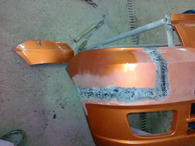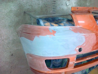 Wymienia³em tylko naro¿nik zderzaka bo w uszkodzonej czê¶ci brakowa³o od spodu elementów do mocowania z b³otnikiem . Lutowany na styk z zatapin± stalowa siatk± na ³±czeniu . Reszta zderzaka by³a OK i zosta³ tylko ,,scieniowany,, baza i klar do po³owy