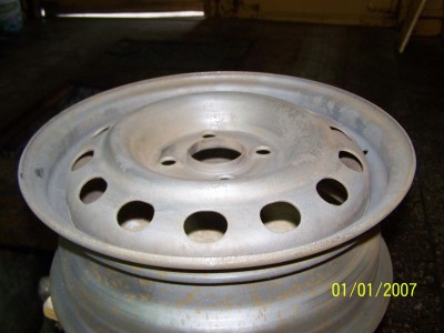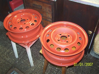a tu kolejne fotki z malowania tym razem felg stalowych brata ciotecznego, welgi piaskowene polamalowane tym czasowo epoksydem potem szary podk³ad i czrny akryl na to wszystko