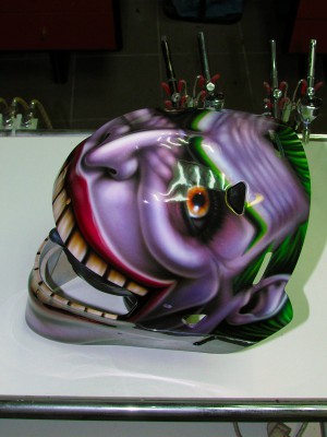 Kask hokejowy dla bramkarza opolskiego ,,Orlika"..