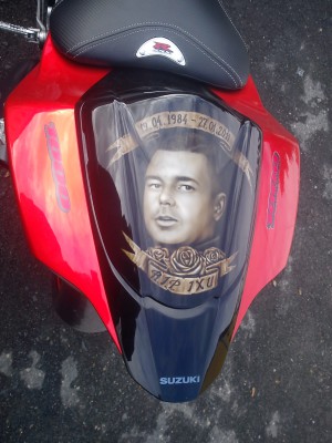 Portret ¦.P. kumpla wykonany na za¶lepce tylnego fotela w ¶cigaczu Suzuki k7 gsxr 1000 jego brata. Kilka godzinek, wolna rêka, i zdjêcie z komórki.. Beda lepsze.. Pzdr..