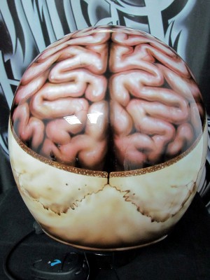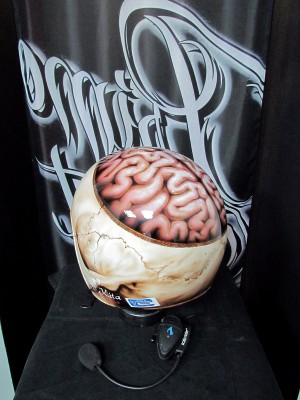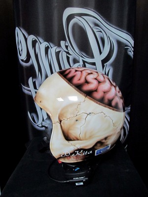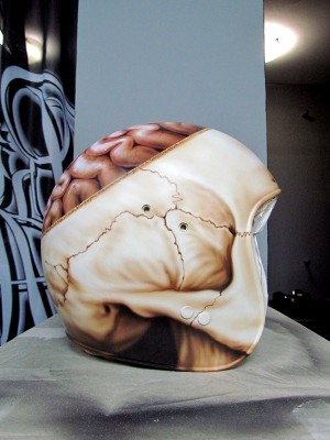 | Kask jest ekstra, ¶wietny pomys³! Brakuje mi tylko uchwycenia tego mózgu troszeczkê g³êbiej, ¿eby nie by³ na takim samym poziomie jak ko¶ci czy tam p³aty czaszki. Z przodu widzê lekki cieñ ale z ty³u ju¿ nie ma. |