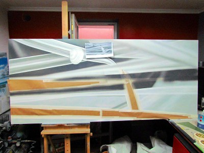 Ostatnio duzo eksperymentuje,male rzeczy wyrwane z kontekstu,zadnych konkretówc,zaglebiam sie w fotorealizm a sam wiesz ze tutaj z nikad pomocy:) wszystko trzeba oplacic czasem i potem,ostatnio dla relaksu i uspokojenia nerwow wzialem sie za portret,jestem na finiszu,mysle,ze pod koniec tygodnia powinienem skonczyc,wrzuce foty,jak nie zapomne to jutro zrobie fotke kamaro,ktore malowalem w warsztacie,tak dla komentarzy aby forum nie zasypialo |