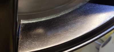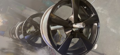 Pogoda kiepska wiêc maluje sobie felgi które by³y ju¿ w podk³adzie akrylowym. Zwykle przed baz± szlifowa³em 800 na mokro ale naczyta³em siê ¿e mo¿na rêcznie na sucho 400-500. Mia³em akurat papier 400 wiêc próbuje i... Po dwóch warstwach bazy czarny metalik ci±gle widzê ryski :(