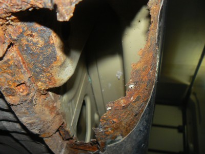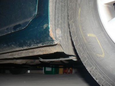 Widok na próg przy tylnym nadkolu, (korozja raczej mniejsza ni¿ z przodu).