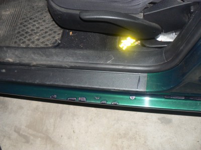 Widok z zewn±trz na próg przy przednich drzwiach (zeszlifowane drobne ogniska korozji, raczej spowodowane uszkodzeniami lakieru podczas wsiadania).