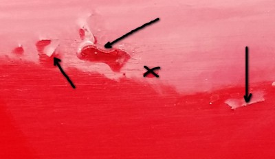 Zedrzyj to, pó¼niej epoksyd 2k,po paru minutach, na to akryl 2k,niech porz±dnie wyschnie,obrób psiknij i wy¶lij foty po korekcie. |