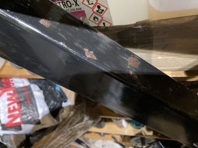 masz racje ale przerabialem to juz kilkukrotnie ze darlem te oczka po rdzy do zera papierem sciernym i na to jak dawalem lakier to poprostu zostawaly oczka a bym chcial ze tak sie wyraze to zalac jakims srodkiem i myslalem o szpachli natryskowej, kilka warstw tak zeby to sie zlalo w jednosc, potem czarny kolor i na to klar poliuretanowy co da wytrzymalosc