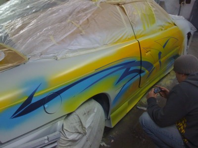 - kup sobie abralon 2000 (firma 3M chyba) lub podobny produkt innej firmy, zmatuj powierchnie. na niej mozesz malowac, jak cos nie halo mozesz zmyc rozcieñczalnikiem do bazy, tylko odmuchuj aby nie odpazyc poprzendiej warstwy (oryginalnej)