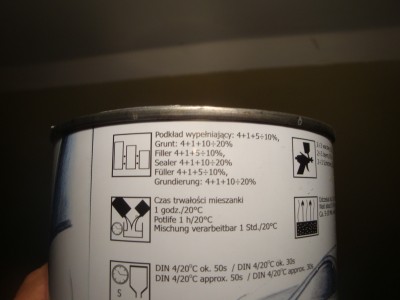 | witam jako nowy mam pytanie podk³ad jak wymiesza³em z utwardzaczem i rozcienczalnikiem to mi plu³ wymieszane wg nadruku na puszce 4+1+5=10% pistoletem hvlp ci¶ 30 psi a prubowa³em zwyk³ym 3.5 bar itroszku lepiej ??? |