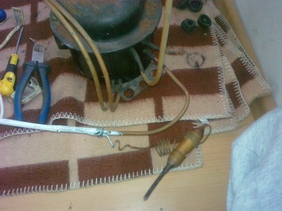 Na pocz±tku ju¿ zacz±³ siê problem poniewa¿ agregat lodówkowy który posiadam nie ma kompletnej tabliczki znamionowej a w dodatku zamiast 3 króæców ma 5, z tego co by³o napisane na lodówce dowiedzia³em siê ¿e ma 160W i pojemno¶ci 240L, najprawdopodobniej produkcji rosyjskiej poni¿ej zamieszczam fotki owego agregatu. Mo¿e kto¶ z was ju¿ siê spotka³ z takim wynalazkiem.