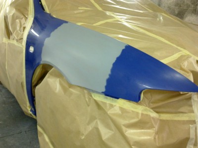 3.Rozszlifowujê miejsca które bêd± szpachlowane b±czkiem P80 w miejscach gdzie jest go³a blacha zapryskujê podk³adem w sprayu np.novol