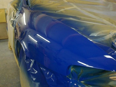 12.aplikacja klaru Devilbiss GTI Clear,przewa¿nie 2 warstwy RM Diamondclear,pierwsza rzadsza,druga taka aby morka nie odbiga³a od struktury lakieru na pozosta³ych elementach nie lakierowanych na aucie