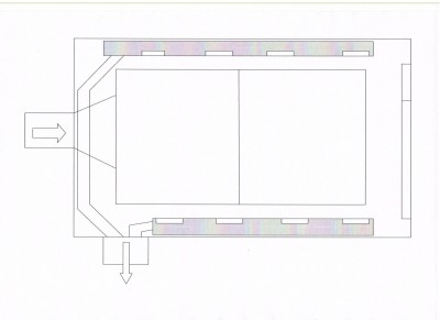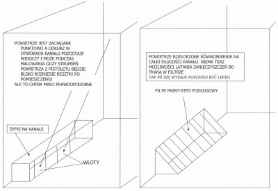 A powiedz mi tak± rzecz bo w pomieszczeniu do malowania mam kana³ do napraw o wymiarach 1m x 3m mo¿e z niego by sz³o zrobiæ wyci±g powietrza (po³o¿yæ kraty i filtr, a wlot wentylatora wyci±gowego umie¶ciæ po przeciwnej stronie do wdmuchowego tak jak pisa³e¶ zrobiæ instalacjê krzy¿ow± ?)