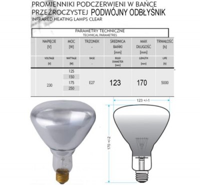 Zarówka PHILIPS IR 175 W 30z³ (rok gwarancji).