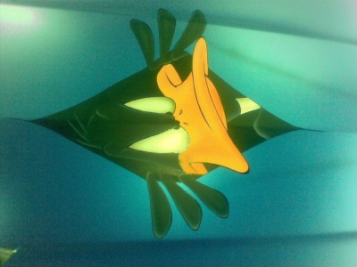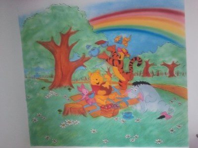 | u¿y³em tu farb wodnych a ¿e mia³em bardzo s³aby do nich dostêp i niewiele kolorów to musia³em kombinowaæ i st±d te rozmycia i niewpasowane niektóre kolory. Rysunek jest wielko¶ci 2m na 2m. Projekt narysowa³em pocz±tkowo na ¶cianie z szablonu pó¼niej nanosi³em kolejno kolorki. Obiecujê ¿e nastêpna praca bêdzie bardziej dopracowana i bardziej szczegó³owa:))) |