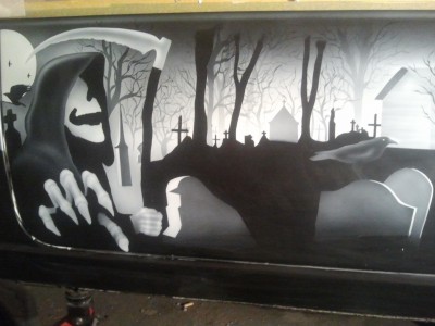 | Akurat to by³ prezencik dla obecnej na zdjêciach pannicy:-) ale my¶lê, ¿e wymalowanie wrzucika na ¶cianie musia³o by kosztowaæ oko³o 400 z³. z tym ¿e wszystko zale¿y od malowanego wzoru. |