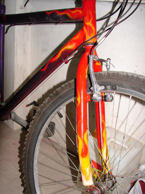 Witam. Przedstawiam moj "nowy" rower. Zalozenie bylo takie aby namalowac plomienie jak najlepiej z freehand'u. Chetnie wyslucham opini forumowiczow jesli jacys tu s±... wiem jest kilku. a ostatnia fota tez do obgadania.