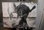 zwiêrz nawet fajny, jak robi³eœ czarne cêtki? zakleja³eœ szablonem, czy wali³eœ kó³eczka z rêki? ogólnie fajny efekt. Podoba mi siê, ¿e nie jest zbyt hiperrealistyczny tylko taki bardziej rysunkowy, lubiê takie prace. Czym malowa³eœ i na czym.